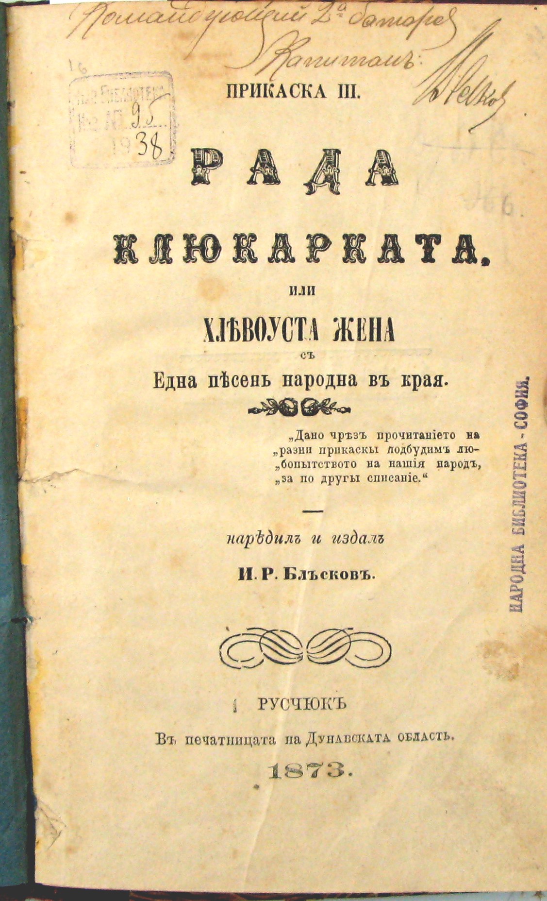 наредил [по Мари дьо Пренс] и издал И. Р. Блъсков