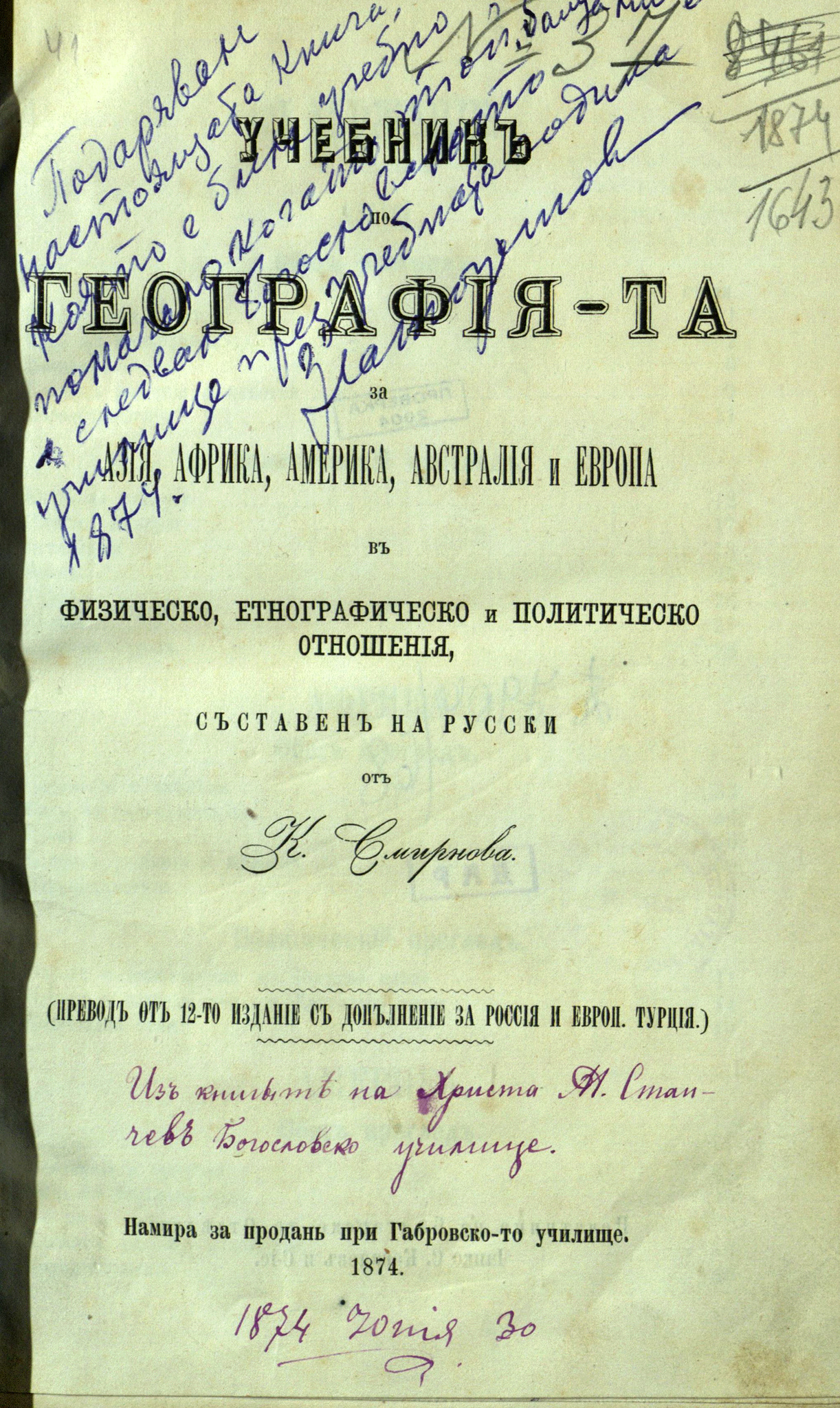 Учебник по географията за Азия, Африка, Америка, Австралия и Европа въ[в] физическо, етнографическо и политическо отношения